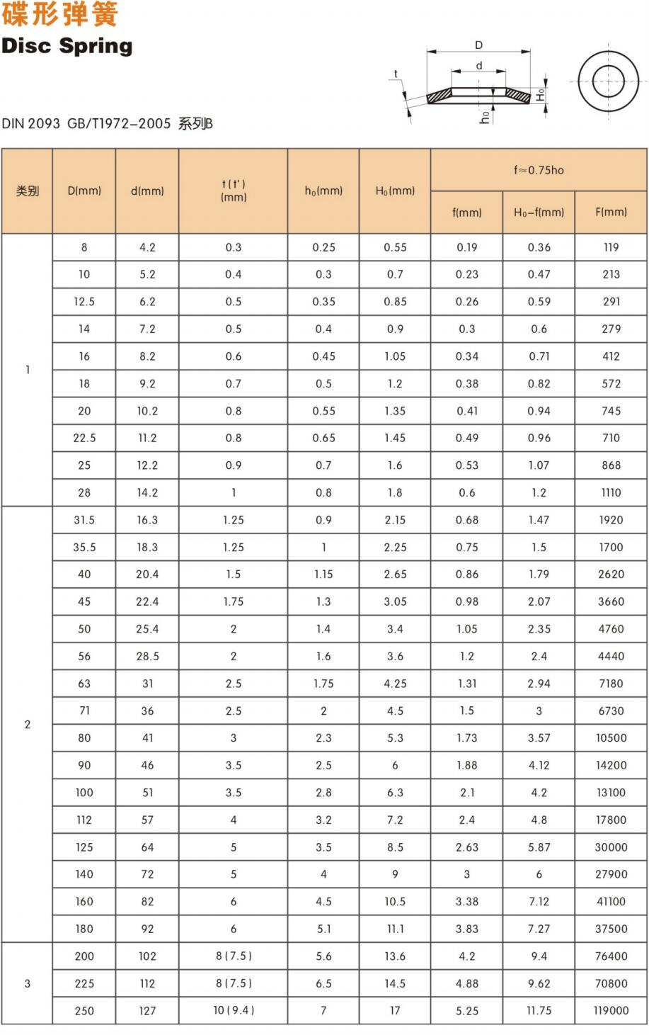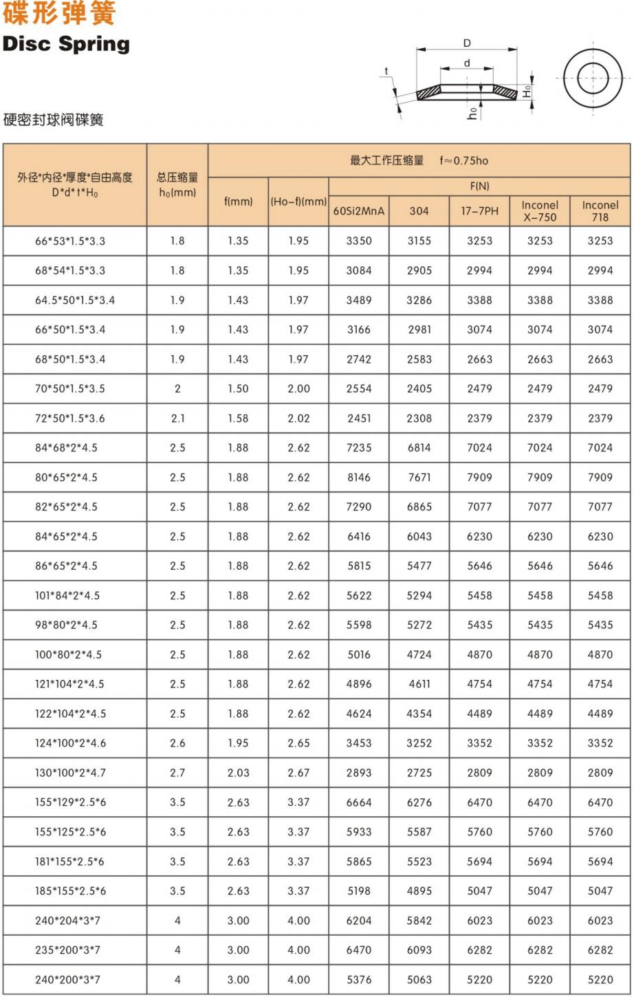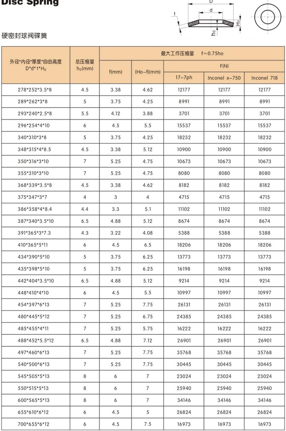 ●如上圖所示,當碟形彈簧的行程大于0.75ho