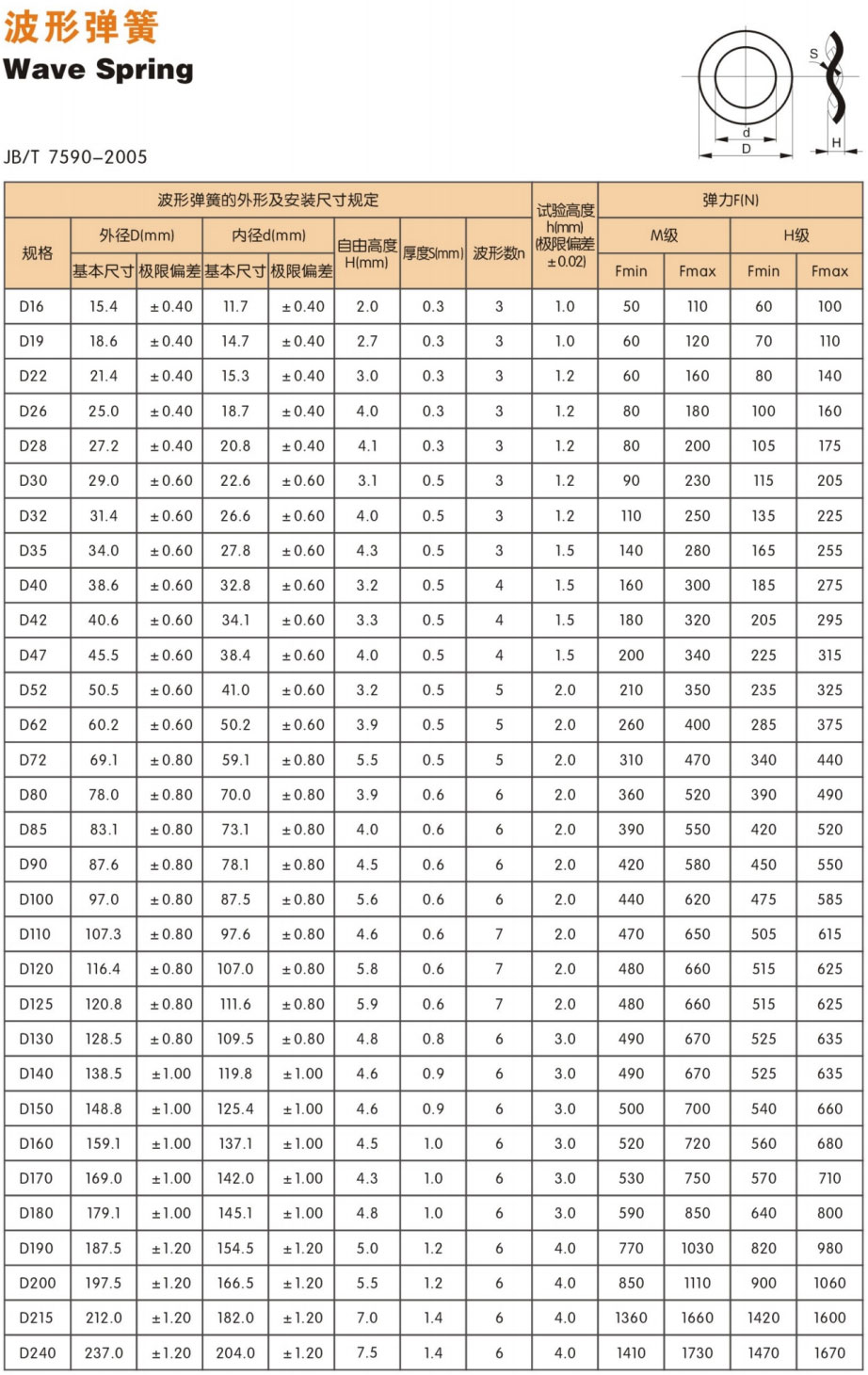 ●可以通過改變材料的厚度、寬度或制成兩層或三層重疊的波簧來滿足不同載荷的使用要求。